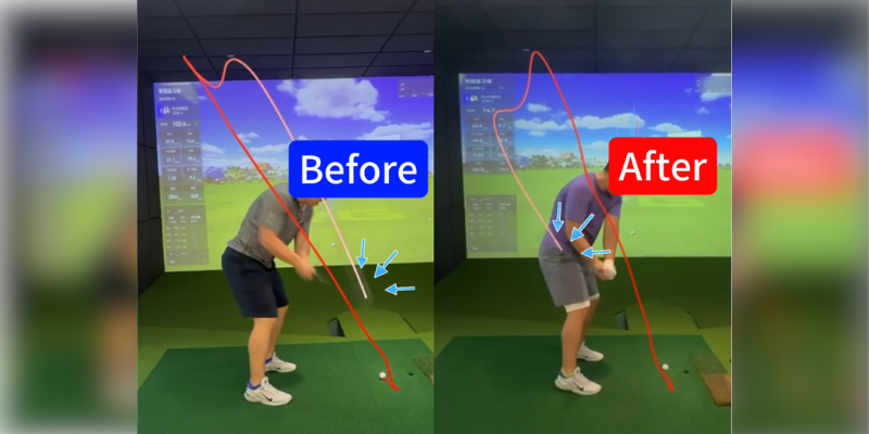 アウトサイドイン軌道が強く、ボールに大きなカット回転がかかり、飛距離や安定性に悩まれていました。